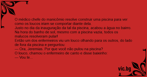 — Ora, Jeremias. Por que você não pulou na piscina?