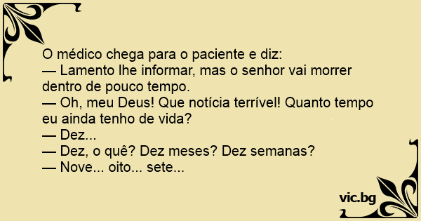 — Oh, meu Deus! Que notícia terrível! Quanto tempo eu ainda tenho de vida?