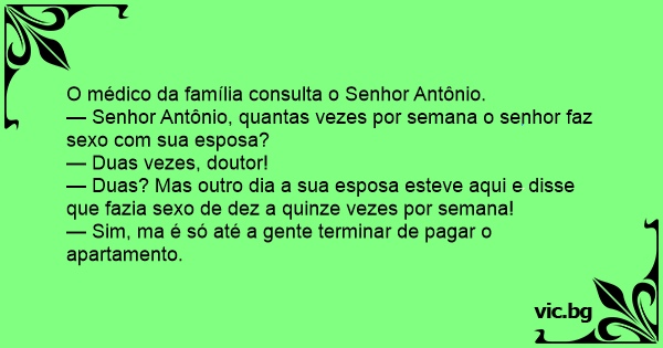 — Senhor Antônio, quantas vezes por semana o senhor faz sеxо com sua esposa?