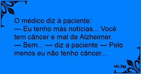 — Eu tenho más notícias... Você tem câncer e mal de Alzheimer.