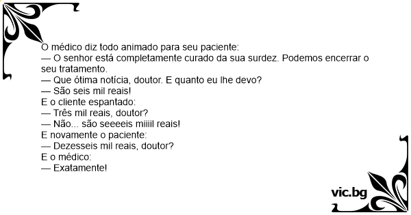 — O senhor está completamente curado da sua surdez. Podemos encerrar o seu tratamento.