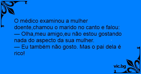 O médico examinou a mulher doente,chamou o marido no canto e falou: