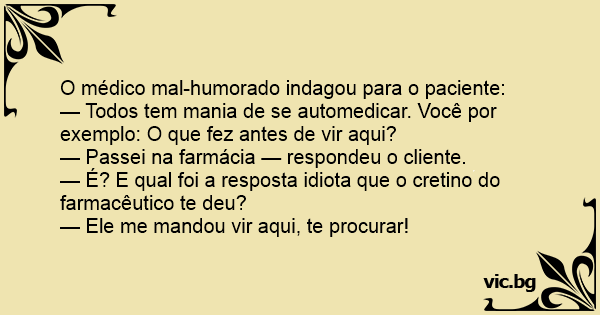 O médico mal-humorado indagou para o paciente: