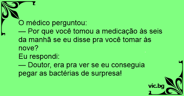 — Por que você tomou a medicação às seis da manhã se eu disse pra você tomar às nove?