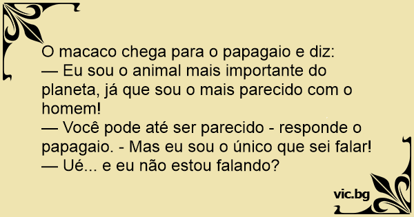 O macaco chega para o papagaio e diz:
