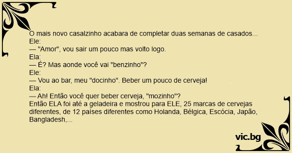 — Mas você sabe como é meu "melzinho", no bar eles servem numa caneca super gelada...