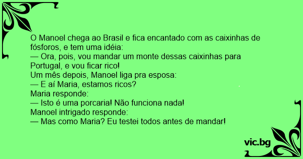 — Ora, pois, vou mandar um monte dessas caixinhas para Portugal, e vou ficar rico!