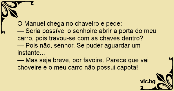 — Seria possível o senhoire abrir a porta do meu carro, pois travou-se com as chaves dentro?