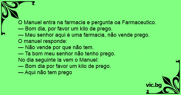 — Meu senhor aqui é uma farmacia, não vende prego.