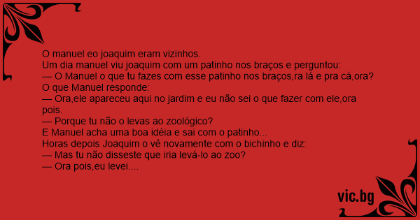 Um dia manuel viu joaquim com um patinho nos braços e perguntou: