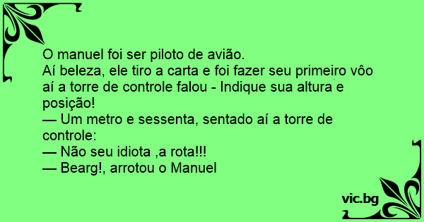 Aí beleza, ele tiro a carta e foi fazer seu primeiro vôo aí a torre de controle falou - Indique sua altura e posição!