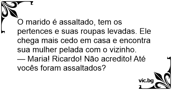 — Maria! Ricardo! Não acredito! Até vocês foram assaltados?