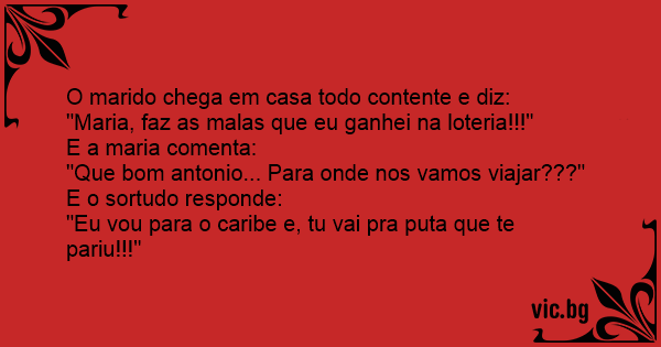 "Maria, faz as malas que eu ganhei na loteria!!!"