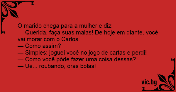 — Querida, faça suas malas! De hoje em diante, você vai morar com o Carlos.