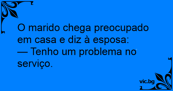 O marido chega preocupado em casa e diz à esposa: