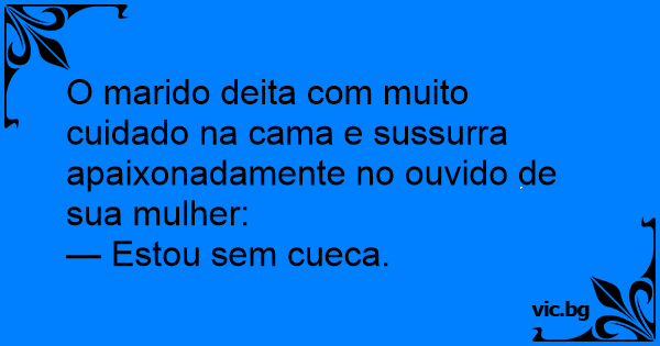 O marido deita com muito cuidado na cama e sussurra apaixonadamente no ouvido de sua mulher: