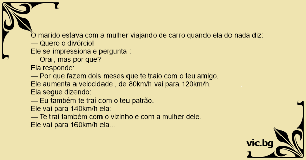 O marido estava com a mulher viajando de carro quando ela do nada diz: