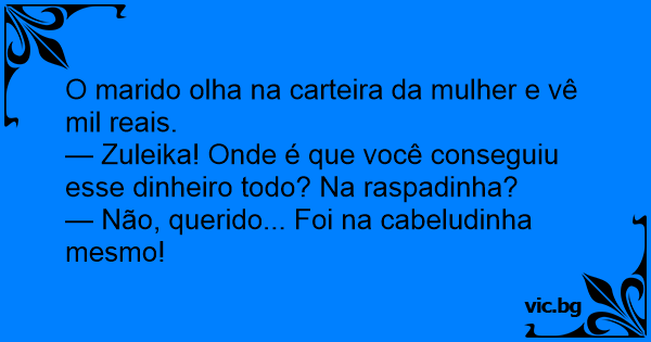 — Zuleika! Onde é que você conseguiu esse dinheiro todo? Na raspadinha?