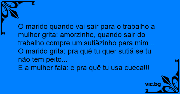 O marido quando vai sair para o trabalho a mulher grita: amorzinho, quando sair do trabalho compre um sutiãzinho para mim...