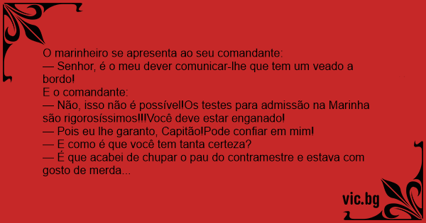 — Senhor, é o meu dever comunicar-lhe que tem um veado a bordo!