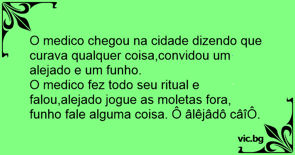 O medico fez todo seu ritual e falou,alejado jogue as moletas fora, funho fale alguma coisa. Ô âlêjâdô câîÔ.