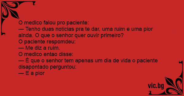 — Tenho duas noticias pra te dar, uma ruim e uma pior ainda. O que o senhor quer ouvir primeiro?