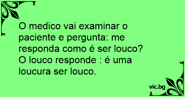 O medico vai examinar o paciente e pergunta: me responda como é ser louco?