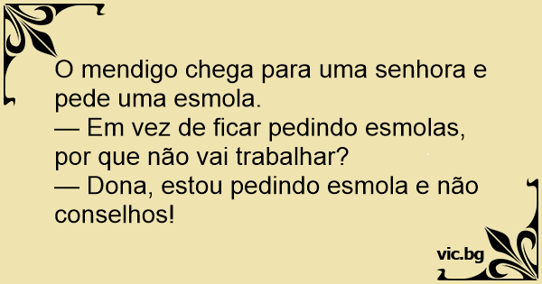— Dona, estou pedindo esmola e não conselhos!