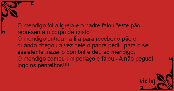 O mendigo foi a igreja e o padre falou "este pão representa o corpo de cristo"