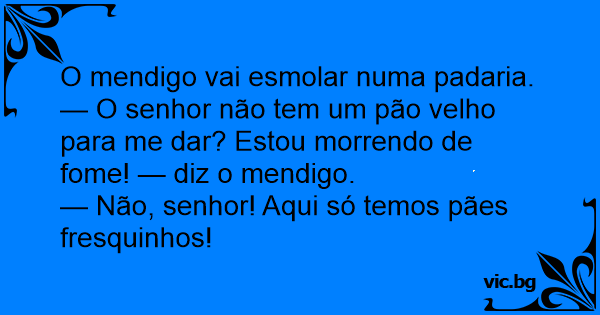 — O senhor não tem um pão velho para me dar? Estou morrendo de fome! — diz o mendigo.