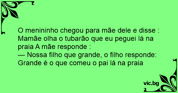 Mamãe olha o tubarão que eu peguei lá na praia A mãe responde :