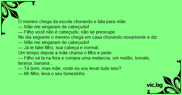 — Mãe me xingaram de cabeçudo!