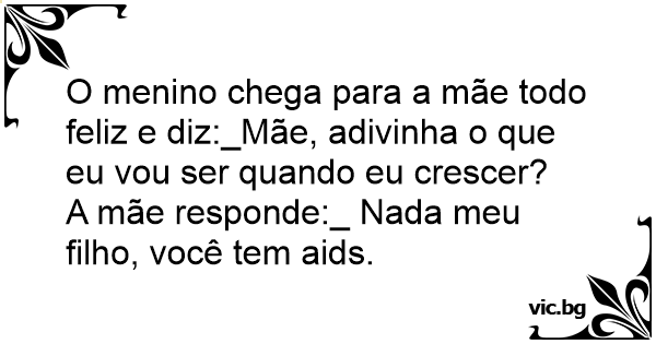 A mãe responde:_ Nada meu filho, você tem aids.