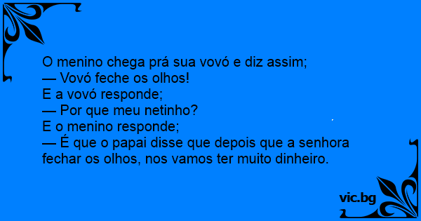 — É que o papai disse que depois que a senhora fechar os olhos, nos vamos ter muito dinheiro.