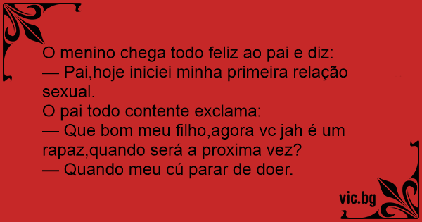 — Que bom meu filho,agora vc jah é um rapaz,quando será a proxima vez?