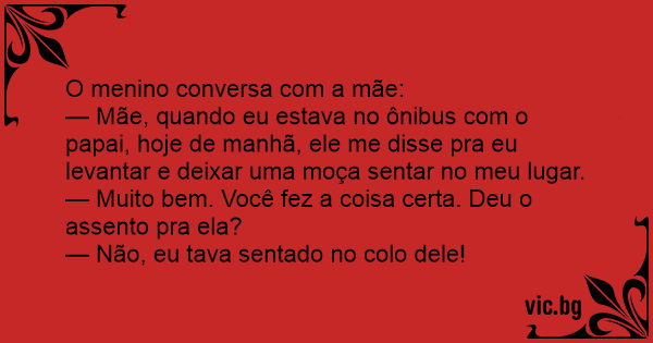 — Mãe, quando eu estava no ônibus com o papai, hoje de manhã, ele me disse pra eu levantar e deixar uma moça sentar no meu lugar.