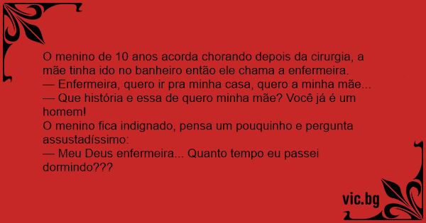 — Meu Deus enfermeira... Quanto tempo eu passei dormindo???