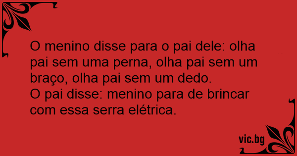 O menino disse para o pai dele: olha pai sem uma perna, olha pai sem um braço, olha pai sem um dedo.