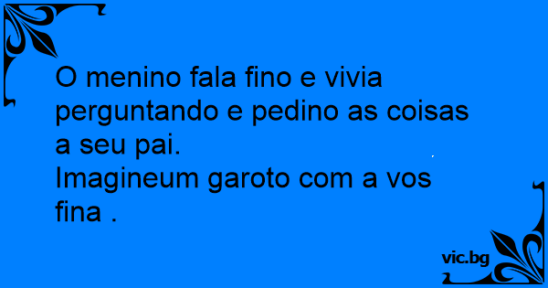 O menino fala fino e vivia perguntando e pedino as coisas a seu pai.