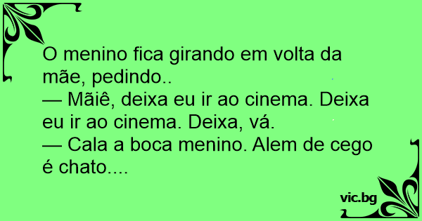 — Cala a boca menino. Alem de cego é chato....