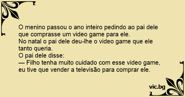 — Filho tenha muito cuidado com esse video game, eu tive que vender a televisão para comprar ele.
