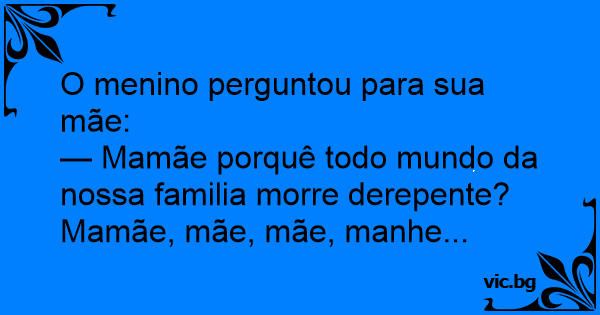 — Mamãe porquê todo mundo da nossa familia morre derepente? Mamãe, mãe, mãe, manhe...