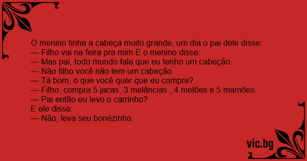 O menino tinha a cabeça muito grande, um dia o pai dele disse: