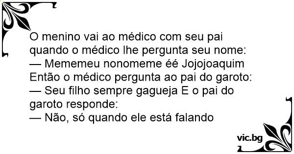— Mememeu nonomeme éé Jojojoaquim Então o médico pergunta ao pai do garoto: