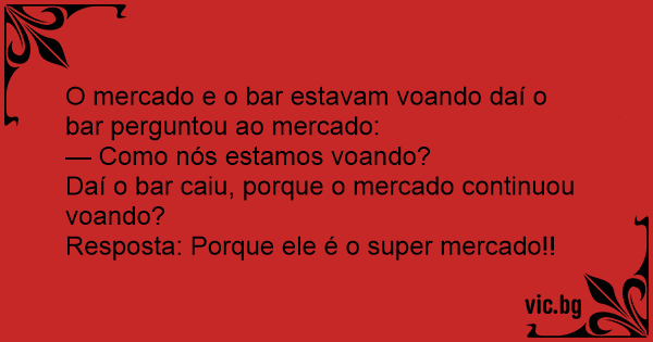O mercado e o bar estavam voando daí o bar perguntou ao mercado: