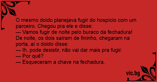 O mesmo doido planejava fugir do hospício com um parceiro. Chegou pra ele e disse: