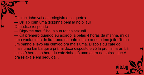 O mineirinho vai ao urologista e se queixa: