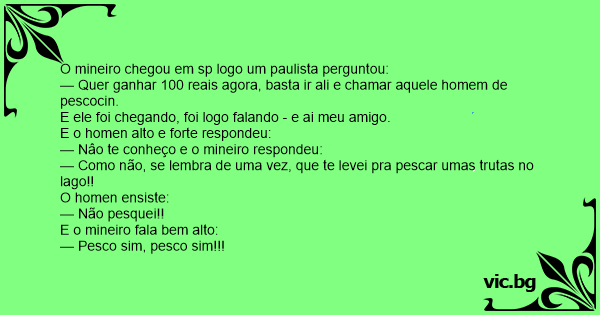 — Quer ganhar 100 reais agora, basta ir ali e chamar aquele homem de pescocin.
