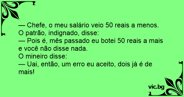 — Chefe, o meu salário veio 50 reais a menos.