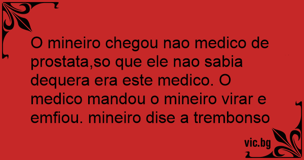 O mineiro chegou nao medico de prostata,so que ele nao sabia dequera era este medico. O medico mandou o mineiro virar e emfiou. mineiro dise a trembonso
